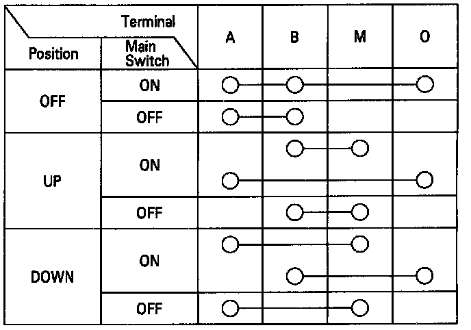The driver's switch is combined with the control unit so you cannot isolate the switch to test it. Instead, run the master switch input test procedures No. 1, 2, 3 and 7. If the tests are normal, the driver's switch must be faulty.