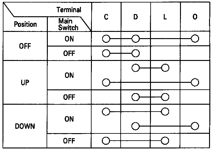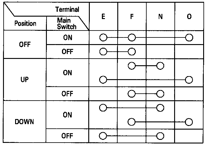 3. Check for continuity between the terminals in each switch position according to the tables.