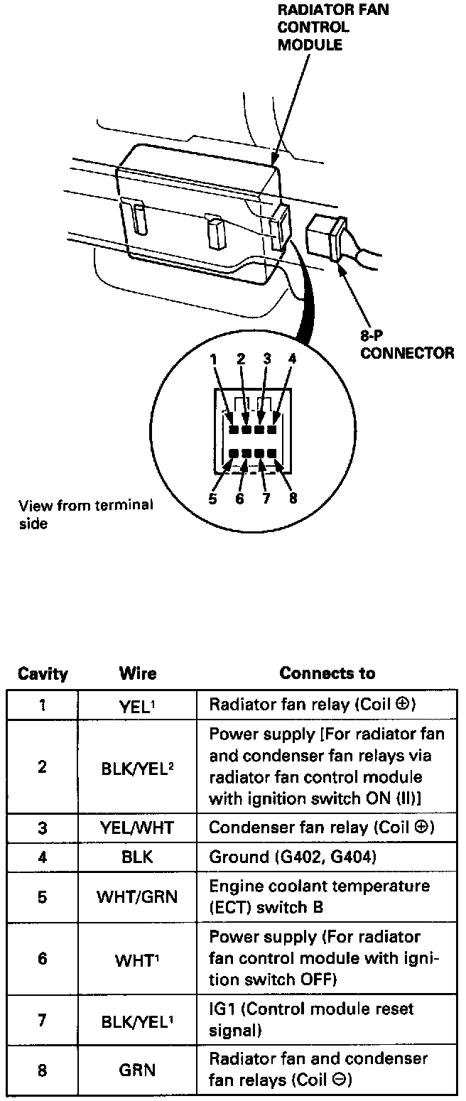 Radiator Fan Control Module TerminalsRadiator Fan Control Module Terminals: