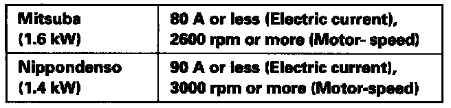 3. If the electric current and motor speed meet the specifications when the battery voltage is at *1, the starter is working properly.
