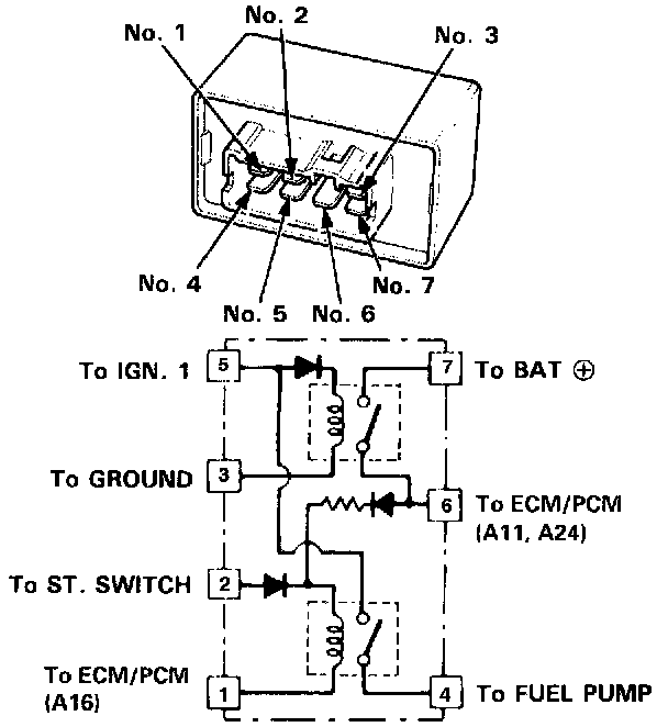 - If there is continuity, the PGM-FI main relay is OK. If the fuel pump still does not work, go to Harness Testing on the next page.