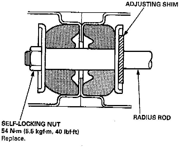 5. After the adjustment, install the radius rod onto the lower arm, and tighten the flange bolts.