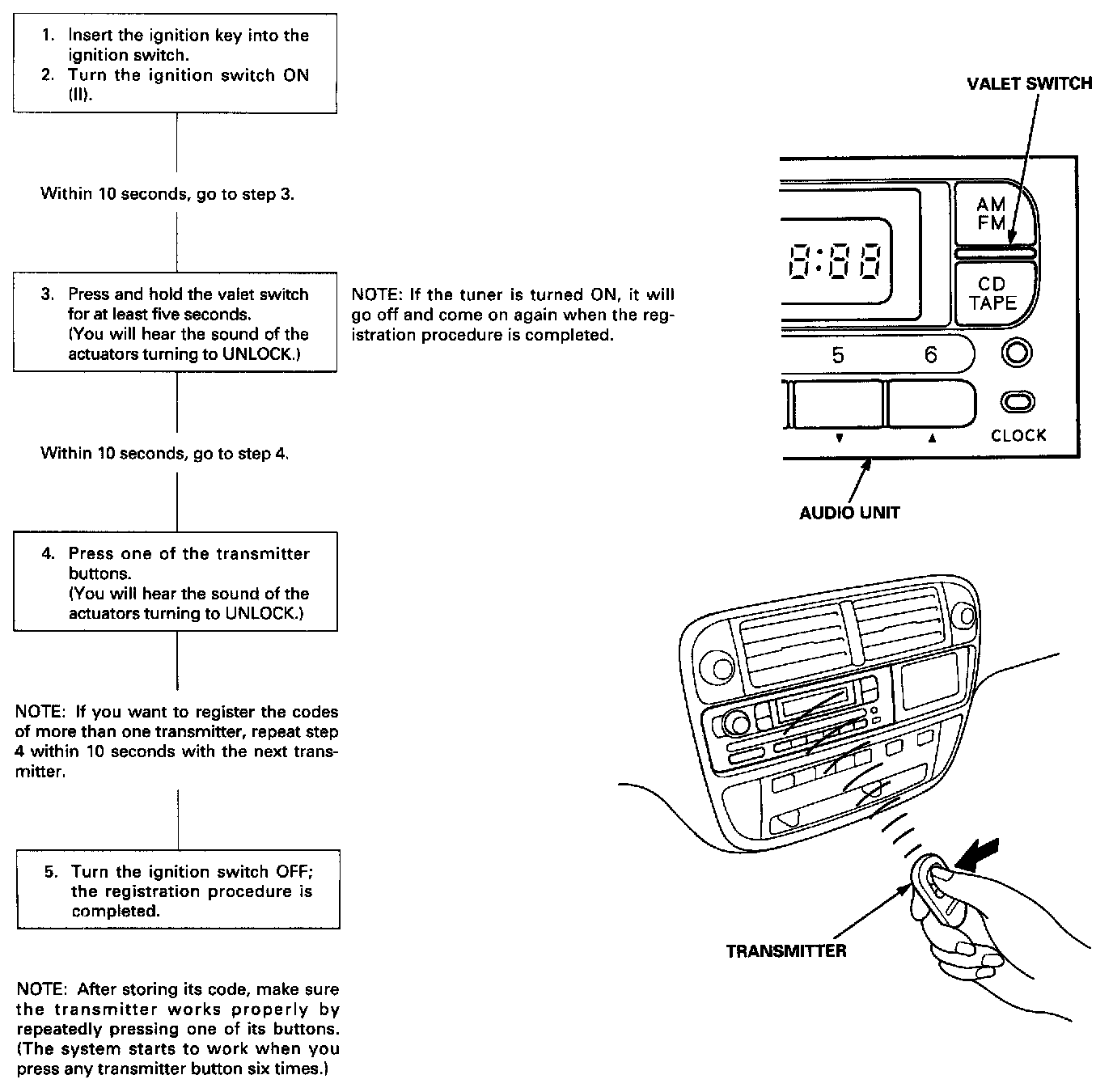 Storing Transmitter Codes- The codes of up to four transmitters can be stored in the control unit. (If a fifth code is stored, the code which was stored first will be erased.)