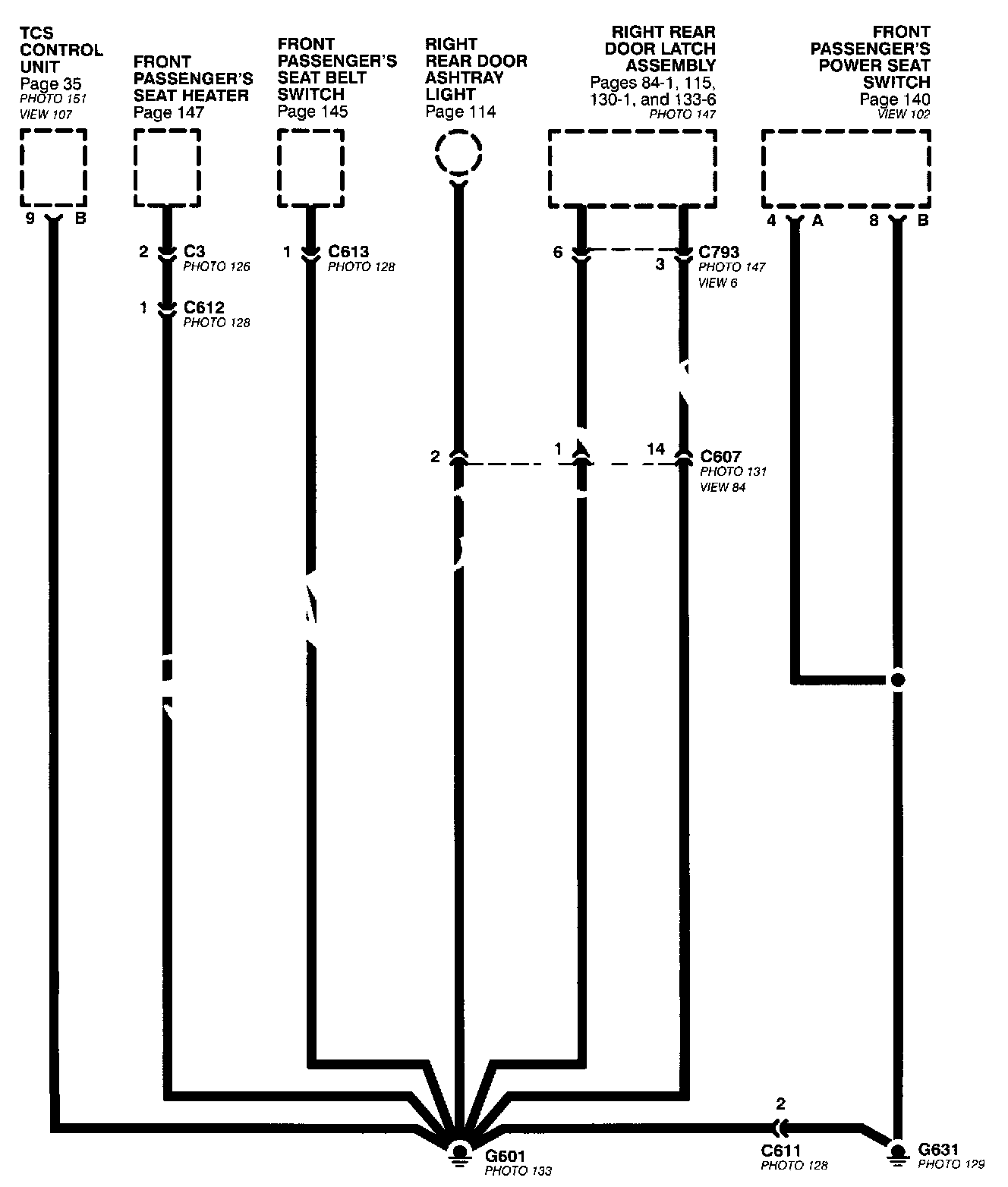 This sample Ground Distribution schematic shows all of the components that share two ground points.