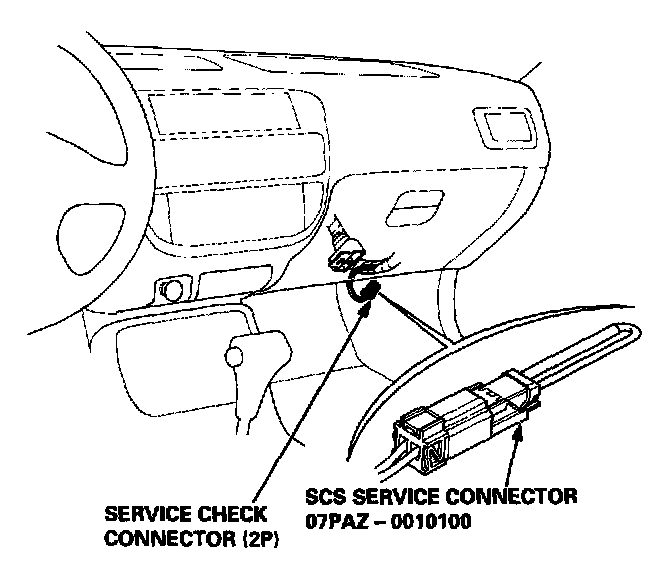 1. Check the idle speed, and adjust it if necessary.2. Pull out the service check connector 2P (BRN and BLK wires) from the connector holder located under the dash on the front passenger side, then connect the SCS service connector (P/N 07PAZ - 0010100) to it.