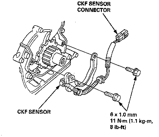 8. Disconnect the Crankshaft Speed Fluctuation (CKF) sensor connector, then remove the CKF sensor.