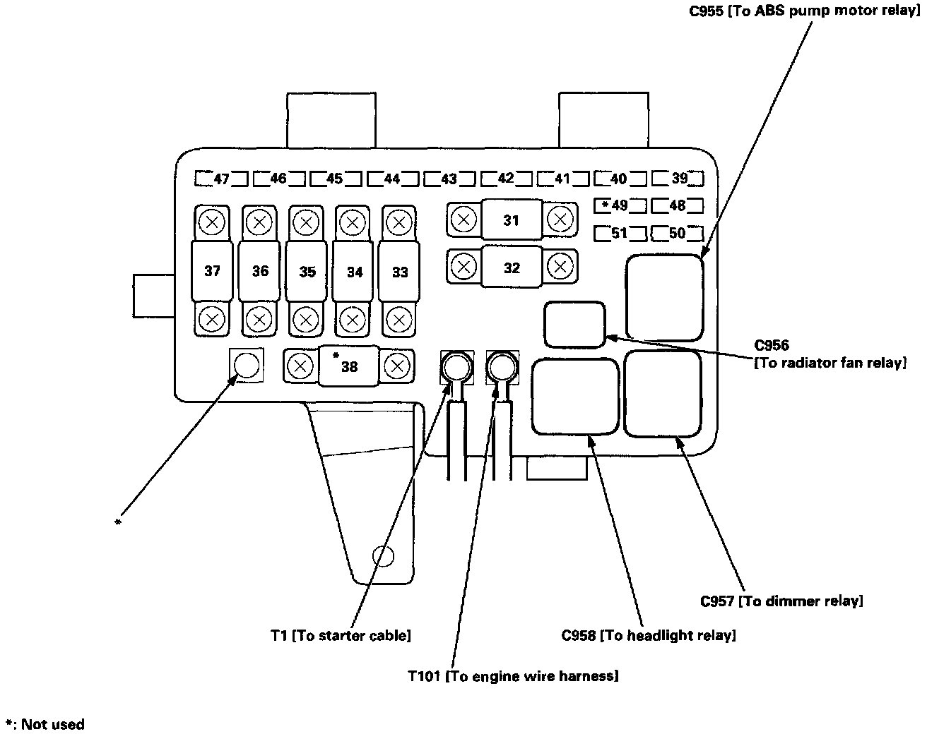 The under-hood fuse/relay box is located on the right side of the engine compartment.
