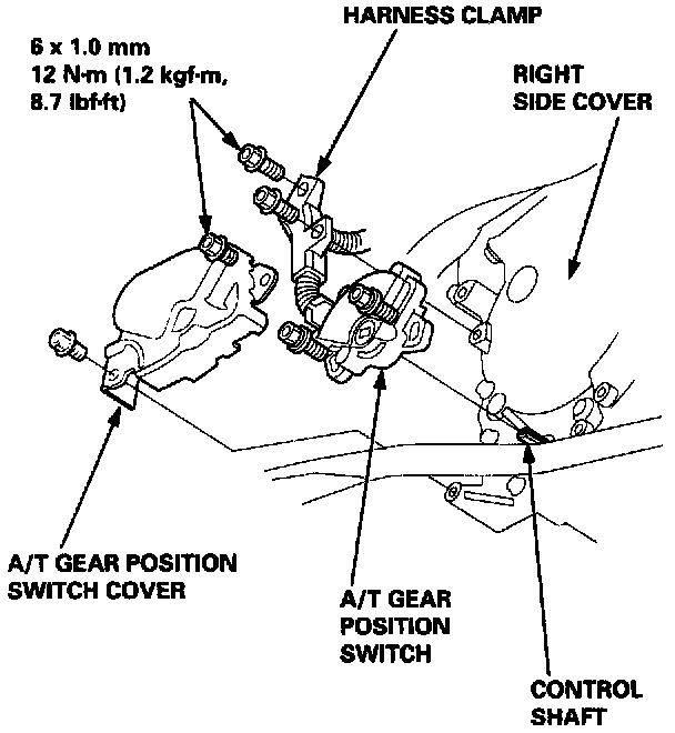 6. Remove the A/T gear position switch cover, then remove the Air gear position switch from the right side cover.