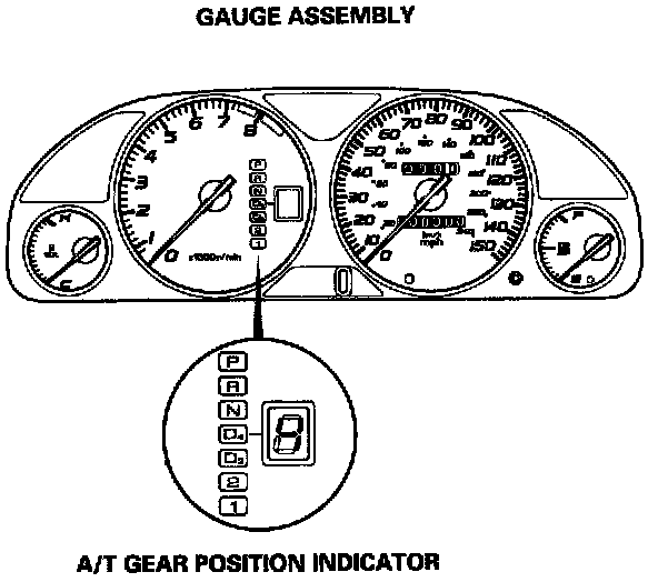 13. Turn the ignition switch ON (II). Move the shift lever through all gears, and check the A/T gear position switch synchronization with the A/T gear position indicator.