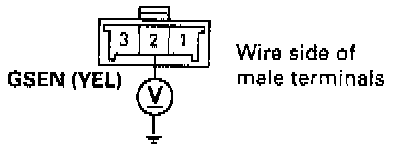 5. Measure the voltage between the lateral G sensor connector terminal No. 2 and body ground with the connector connected.