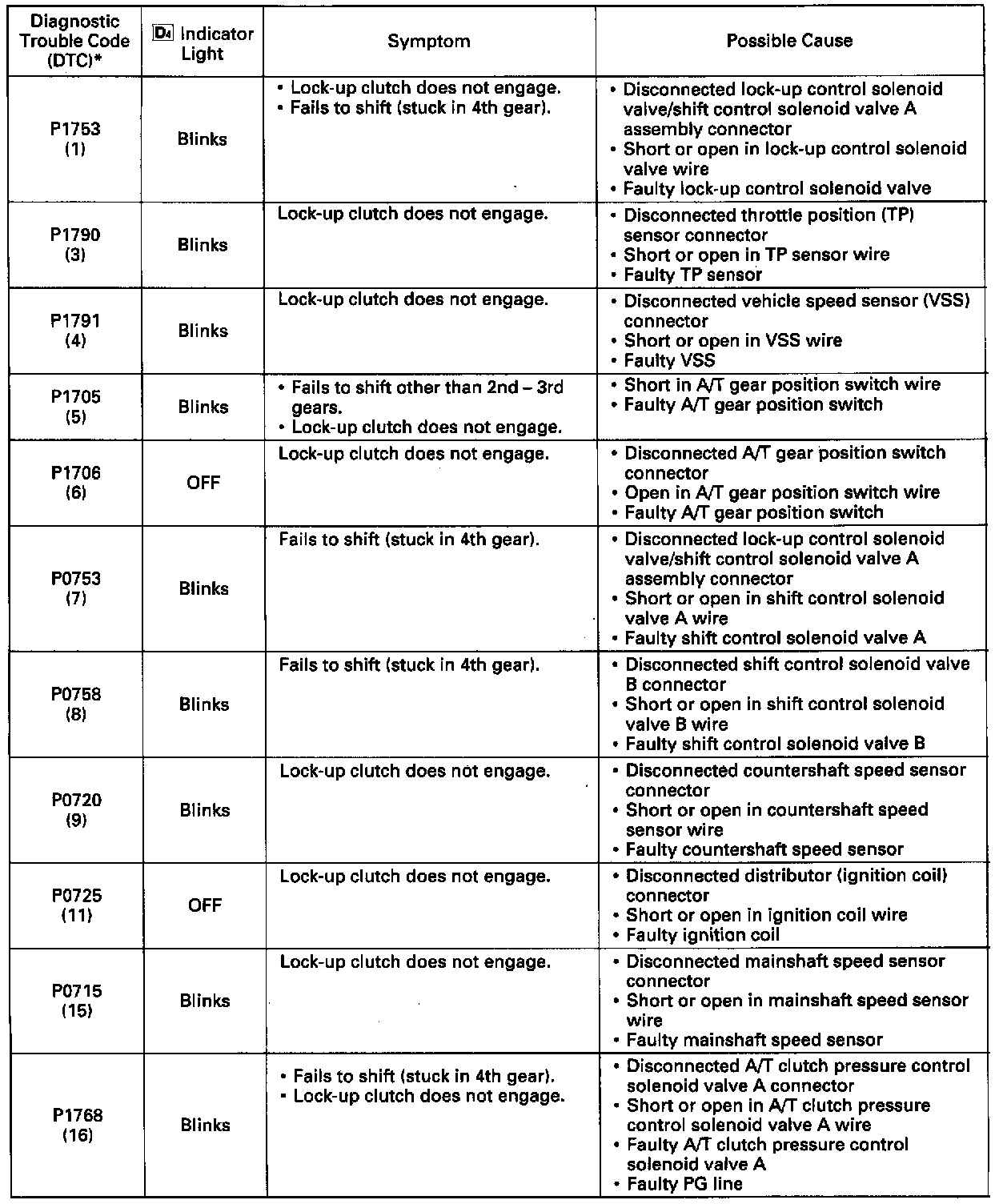 - If a customer describes the symptom for code P1706 (6) or P0725 (11), it will be necessary to recreate the symptom by test driving, then rechecking the DTC.