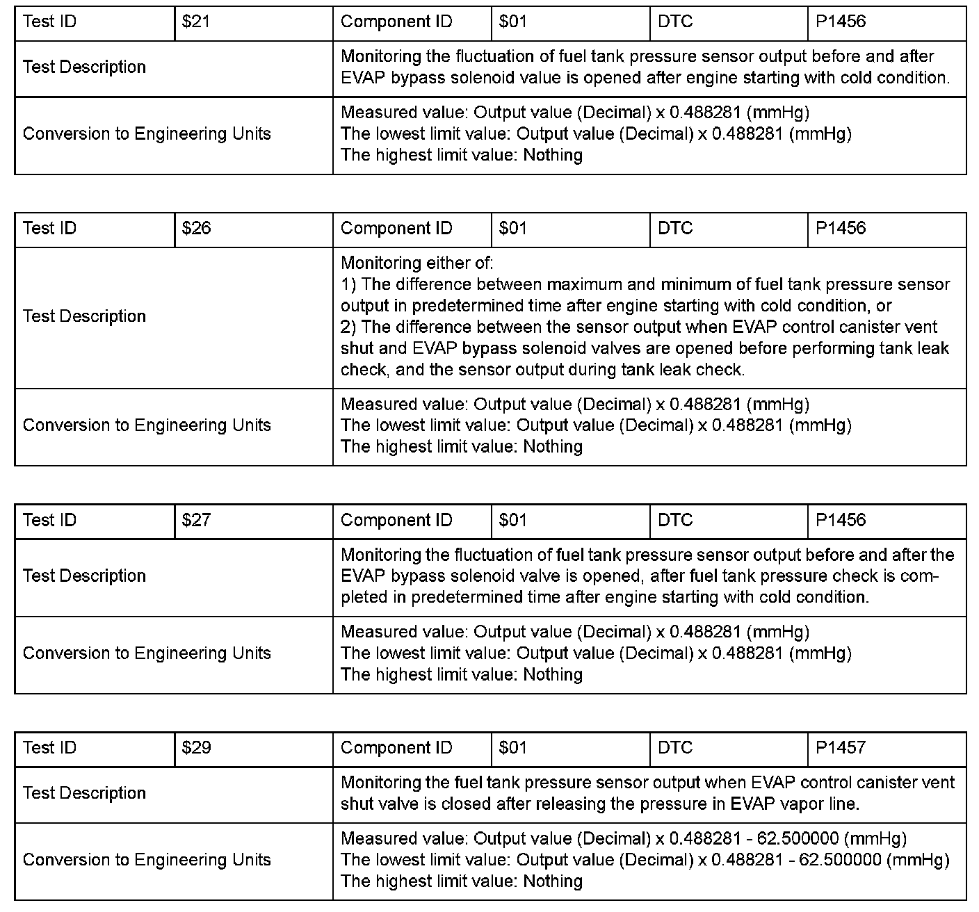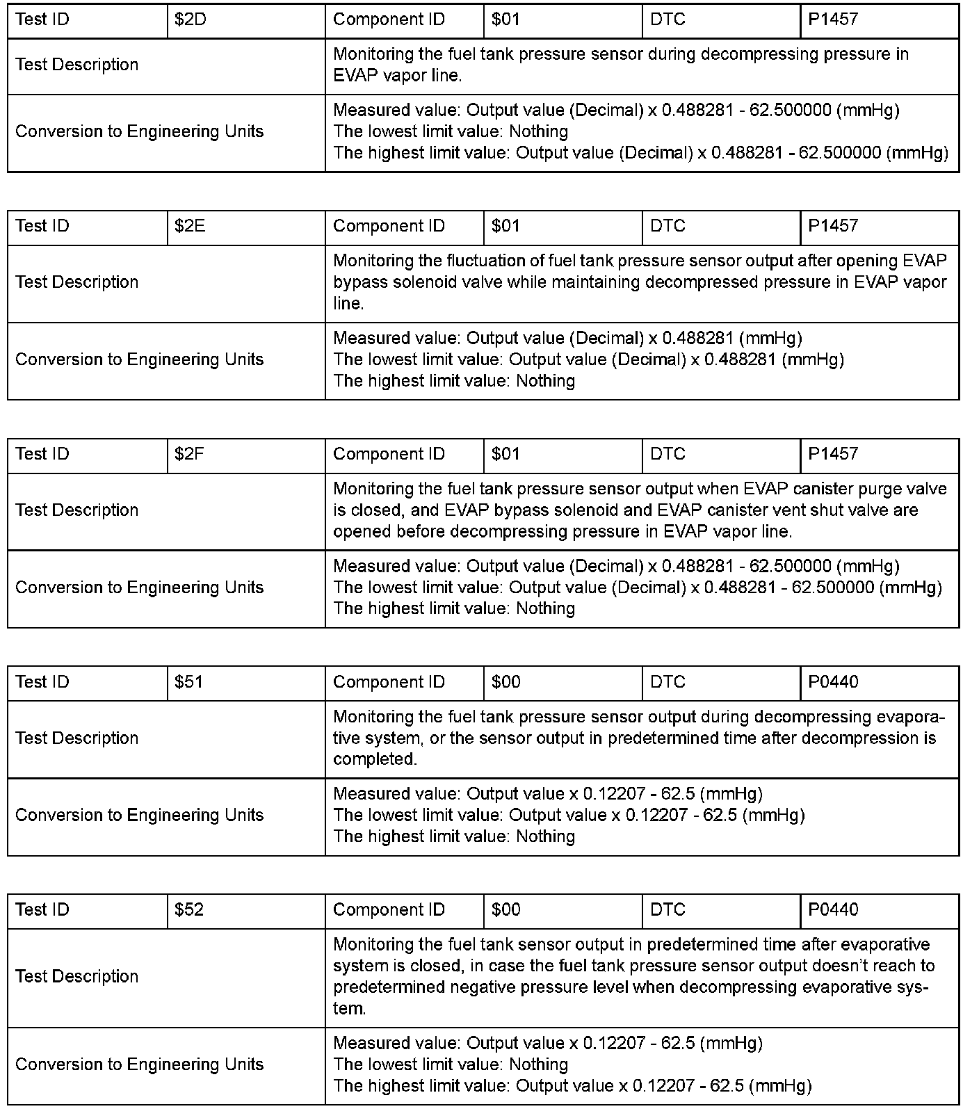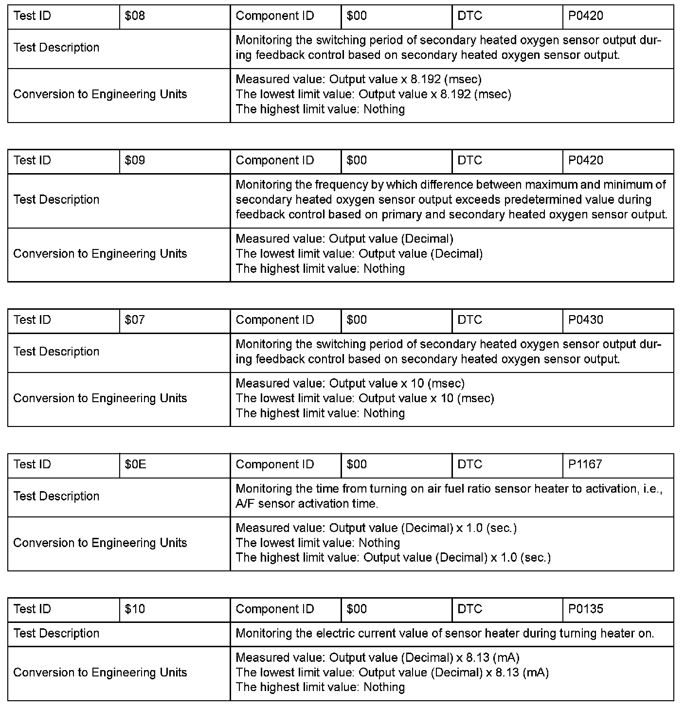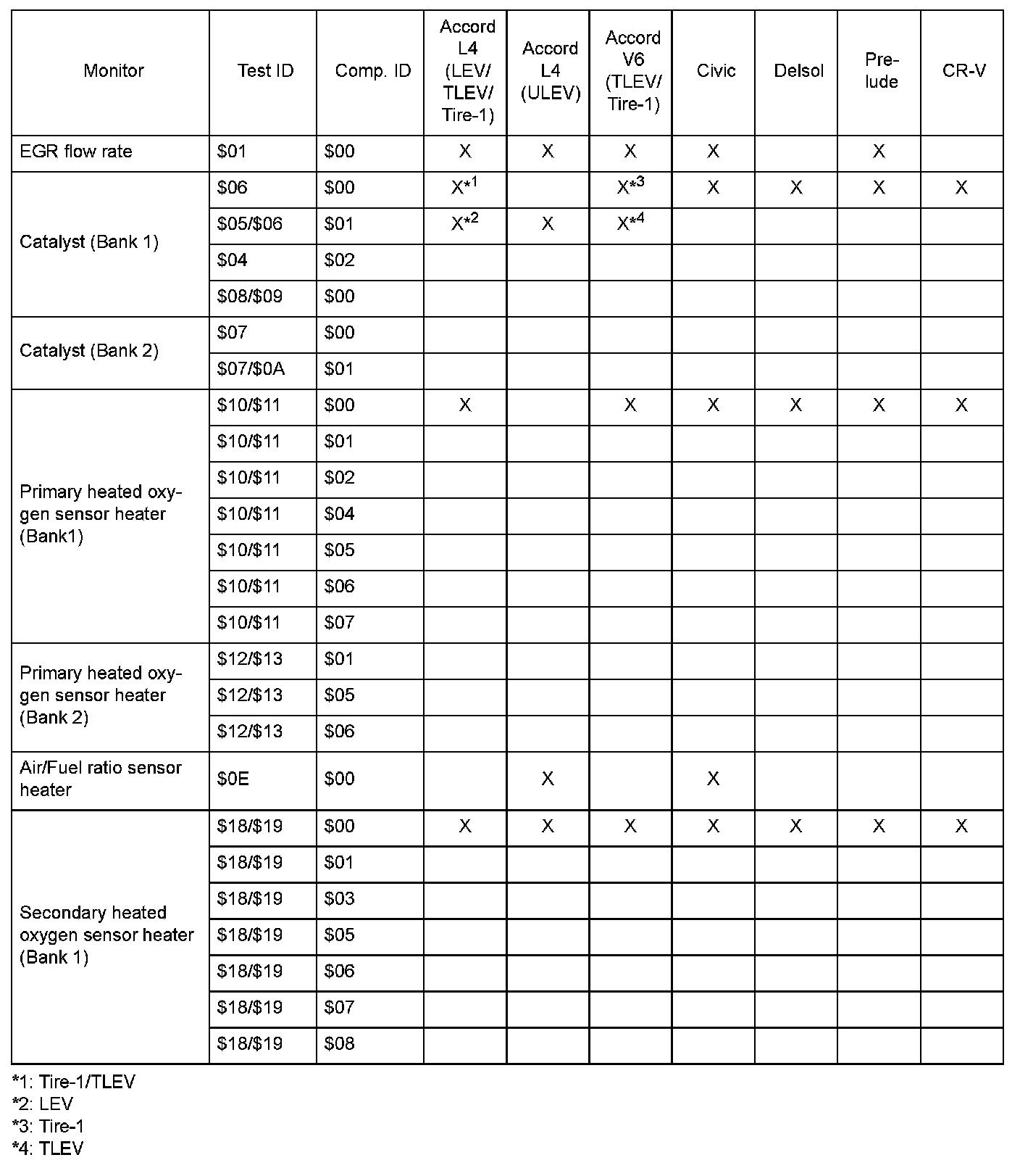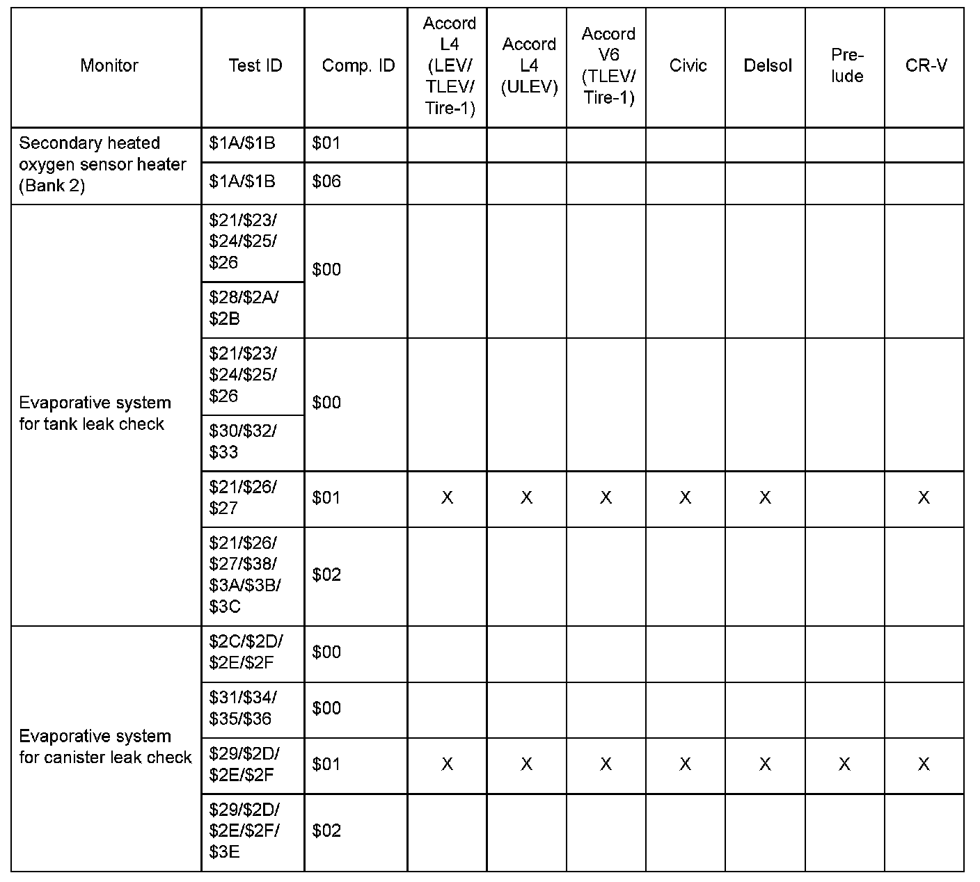 SAE J1979 Mode $06 Test Information: All 1998 Hondas