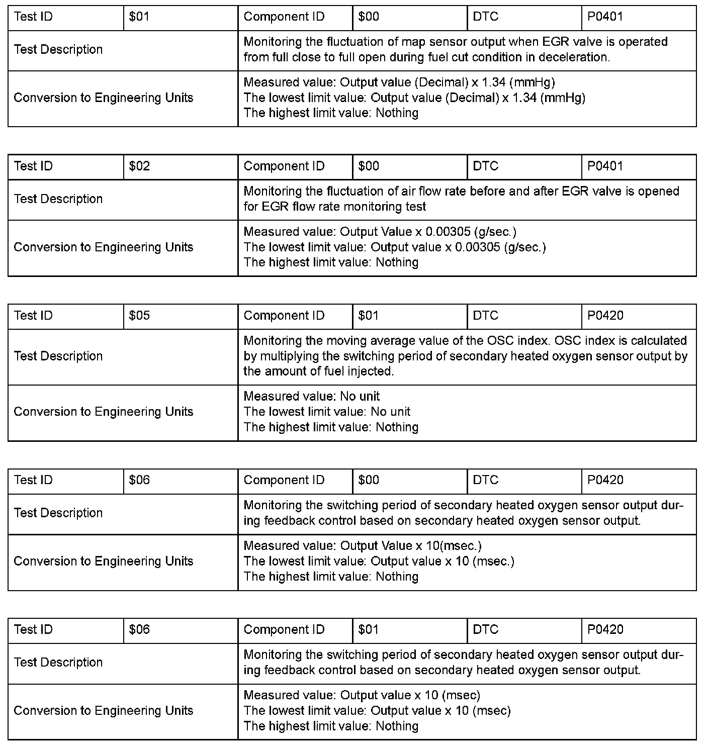 SAE J1979 Mode $06 Information by Test ID