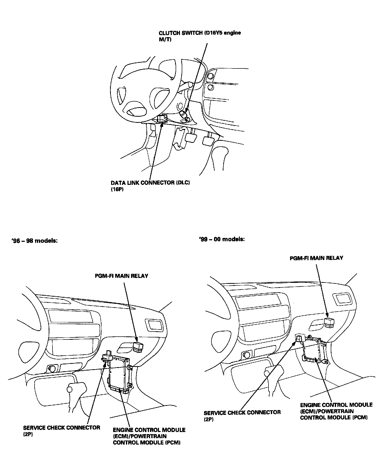 96 - 97 1.6L SOHC VTEC (D16Y8), 97 1.6L SOHC Non-VTEC (D16Y8) And 98 All: