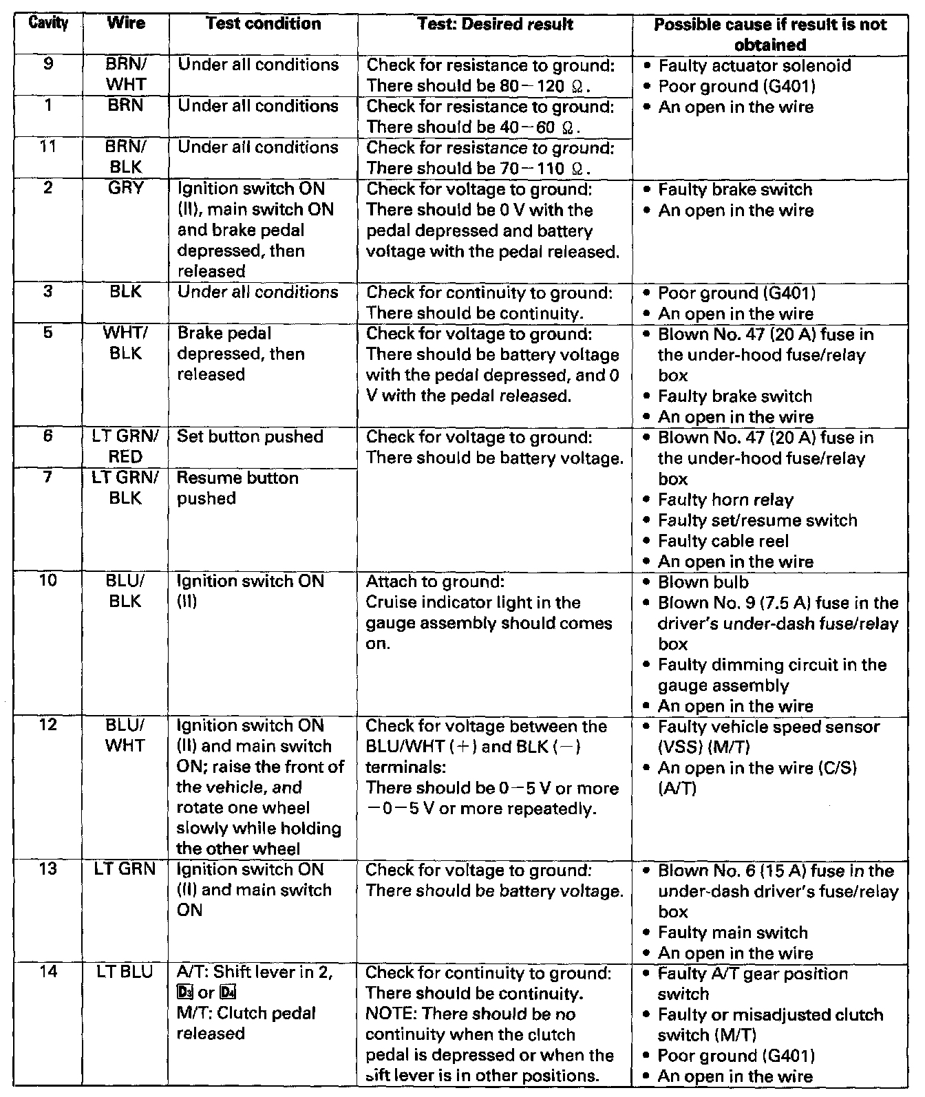 6. If any test indicates a problem, find and correct the cause, then recheck the system. If all the input tests prove OK, the control unit must be faulty; replace it.