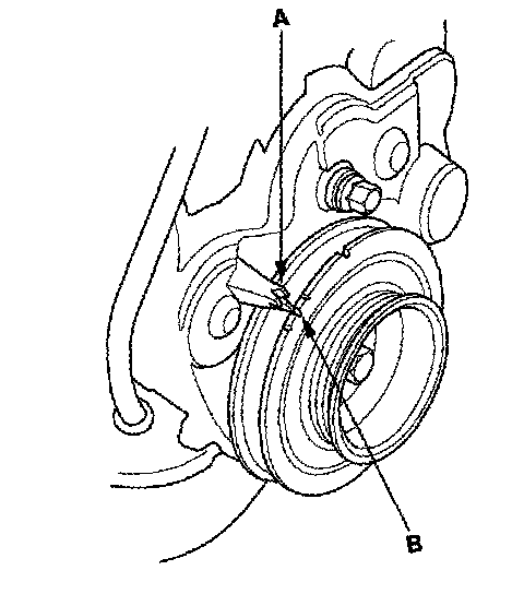 M/T: 12 ° ± 2 ° BTDC (RED mark (B)) during idling in neutral