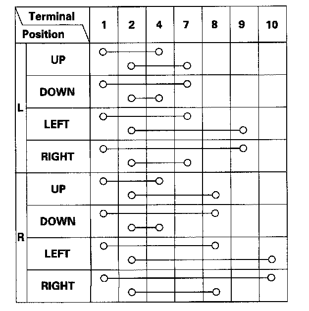 3. Check for continuity between the terminals in each switch position according to the table.