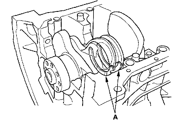 3. Lower the crankshaft (A) into the block.