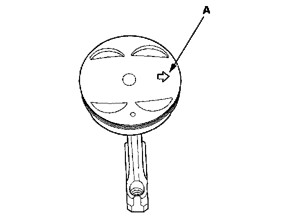10. Install the piston with the arrow (A) facing the timing belt side of the engine.