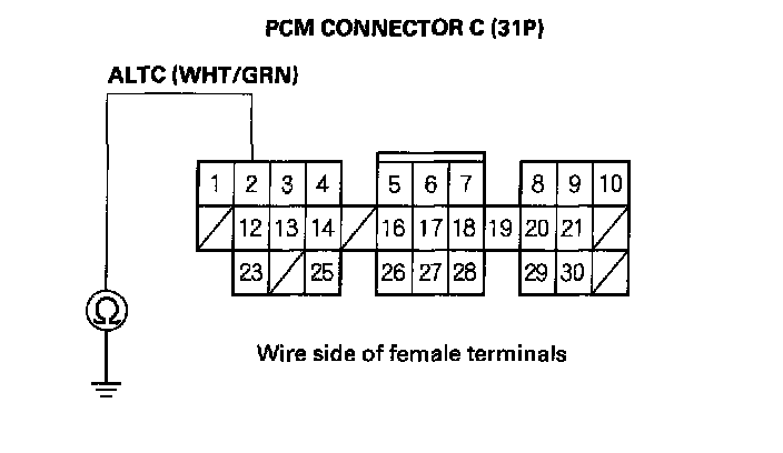 7. Check for continuity between the PCM 31P connector terminal No.2 and body ground.
