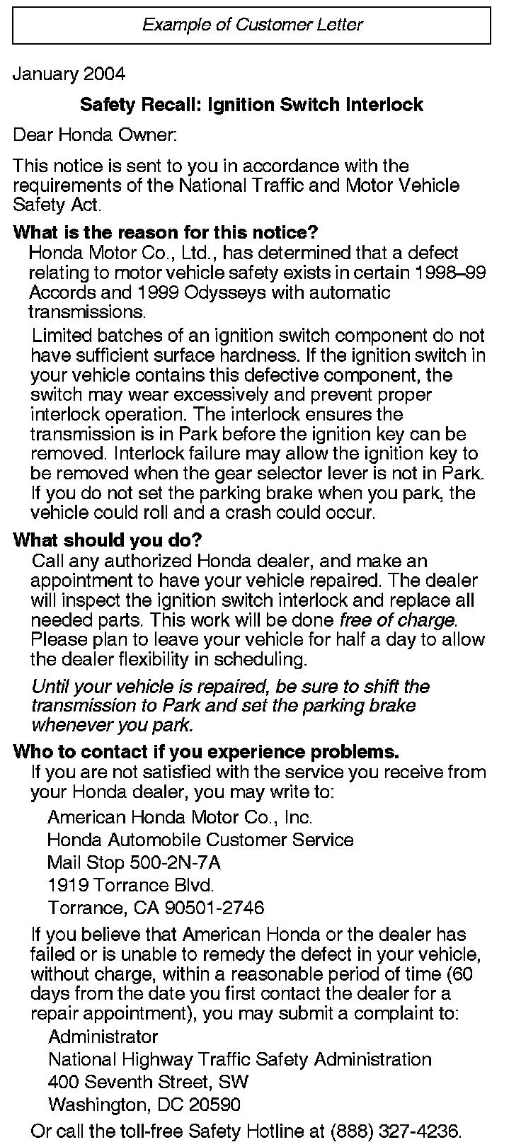 Recall - Ignition Switch Key Interlock Defect