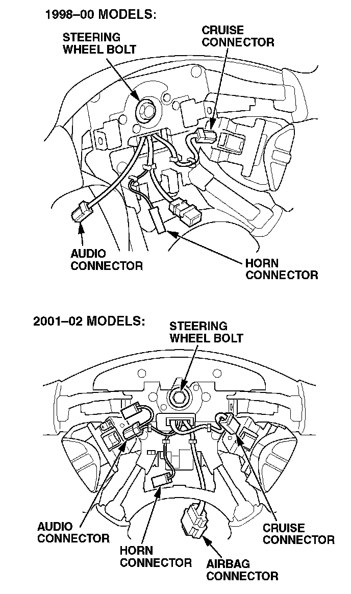 6. 1999-01 models: Unplug the connectors from the remote audio and cruise control switches.