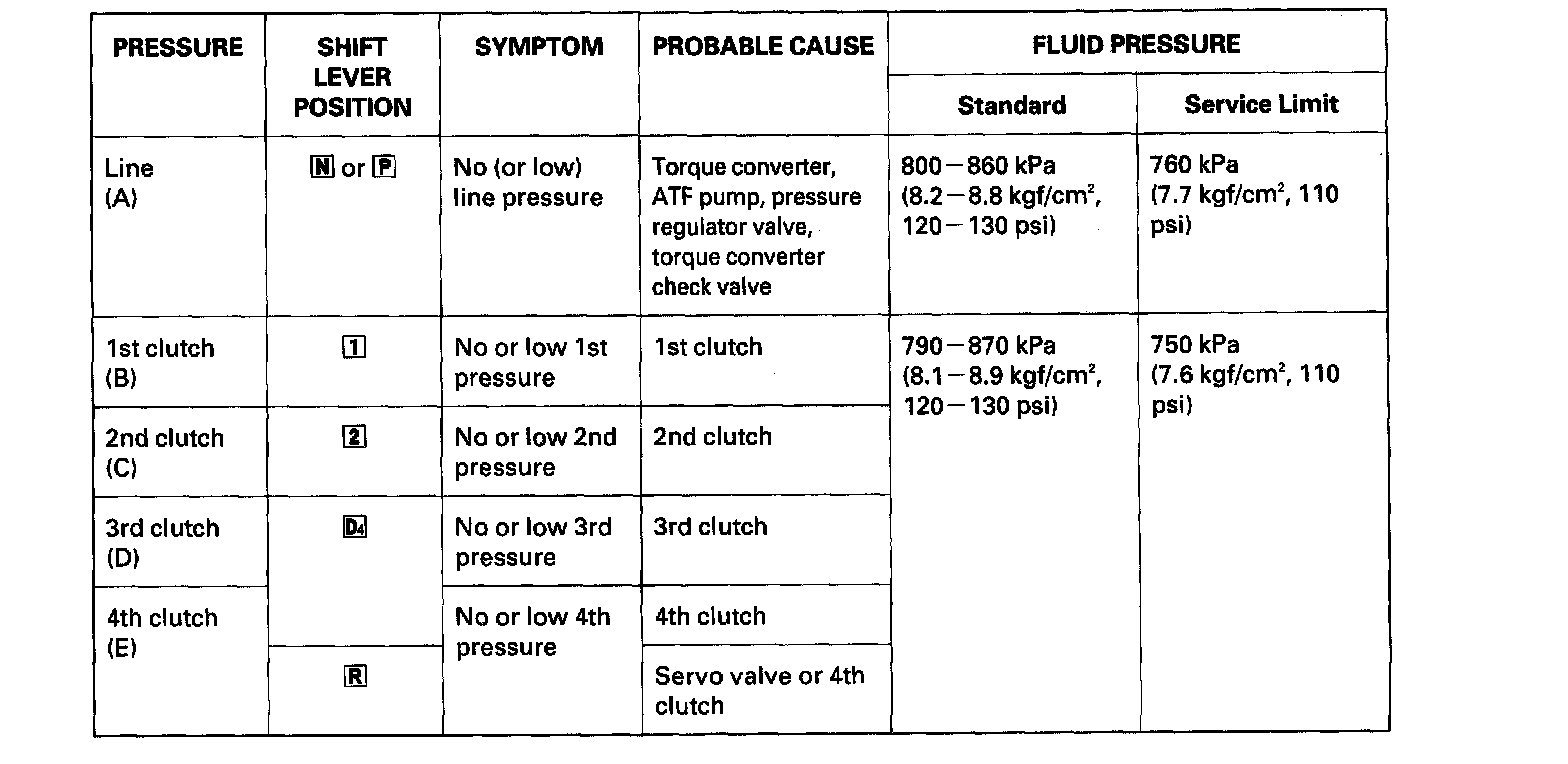 NOTE: Higher pressure may be indicated if measurements are made in shift lever positions other than N or P.