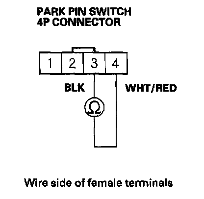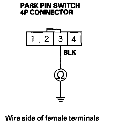 8. With the shift lever in Park, check for continuity between the No. 3 and No. 4 terminals of the park pin switch 4P connector.