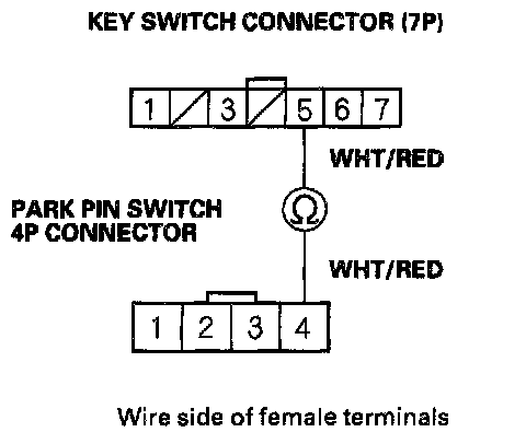 9. Check for continuity between the No. 4 terminal of the park pin switch 4P connector and the No. 5 terminal of the key switch connector.