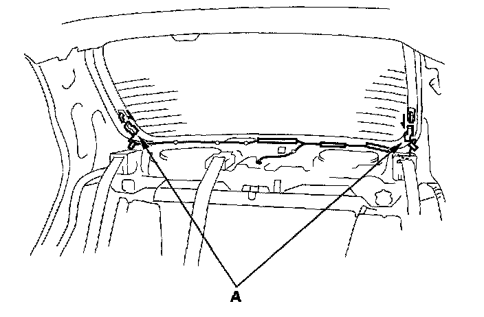 5. Disconnect the rear window defogger connectors (A).