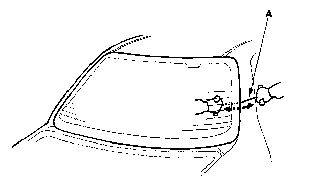 19. Set the rear window in the opening, and center it. Make alignment marks (A) across the rear window and body with a grease pencil at the four points shown. Be careful not to touch the rear window where adhesive will be applied.