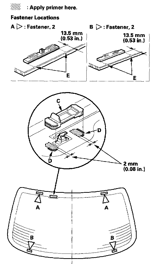- Never touch the primed surfaces with your hands. If you do, the adhesive may not bond to the rear window properly, causing a leak after the rear window is installed.