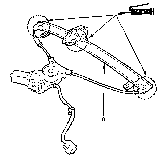 6. Grease all the sliding surfaces of the regulator (A) where shown.