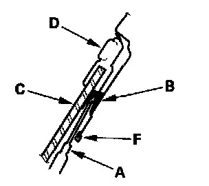 - Apply protective tape (F) along the edge of the entire quarter glass opening flange.