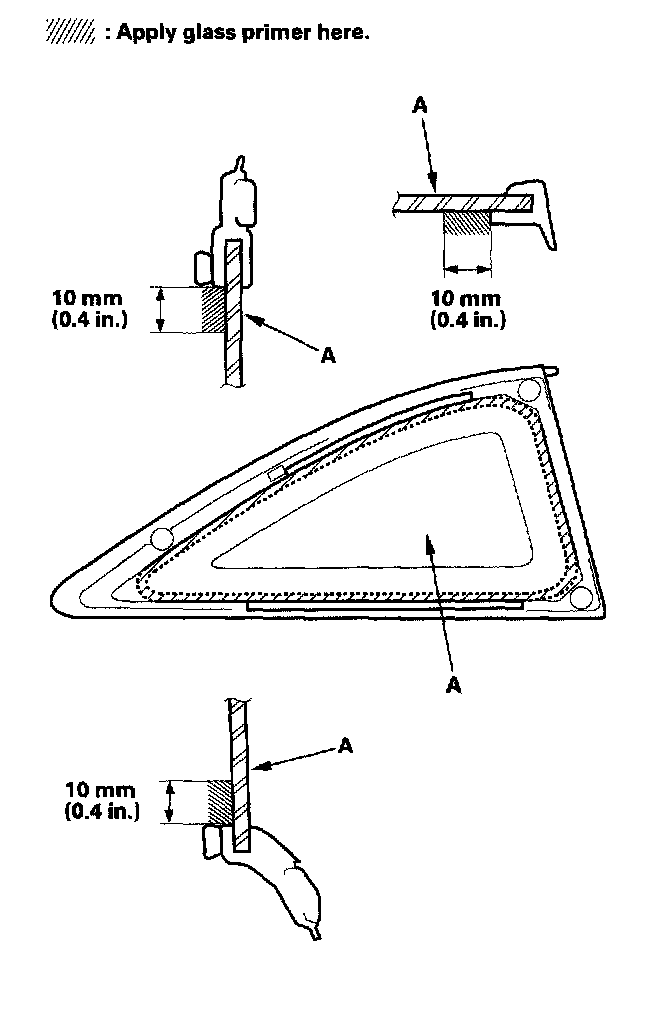 - Never touch the primed surfaces with your hands. If you do the adhesive may not bond to the quarter glass properly, causing a leak after the quarter glass is installed.