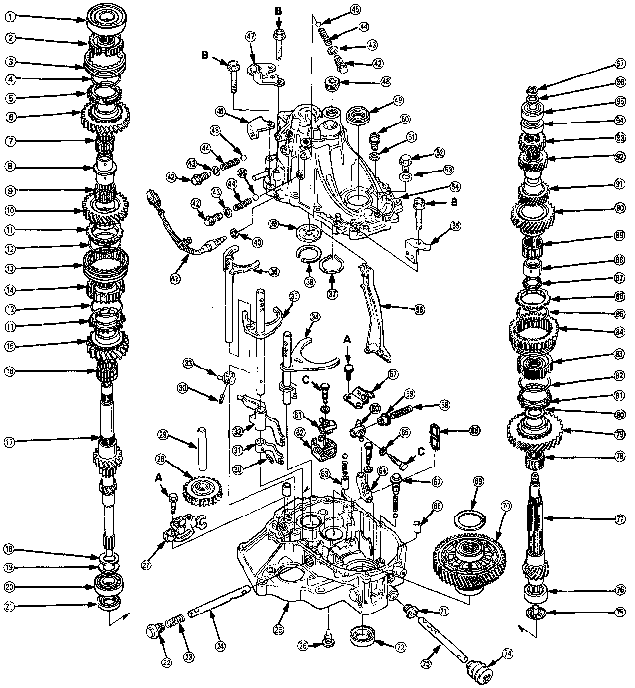 - This transmission uses no gaskets between the major housings; use liquid gasket (P/N 08718-0001 or 08718-0003)