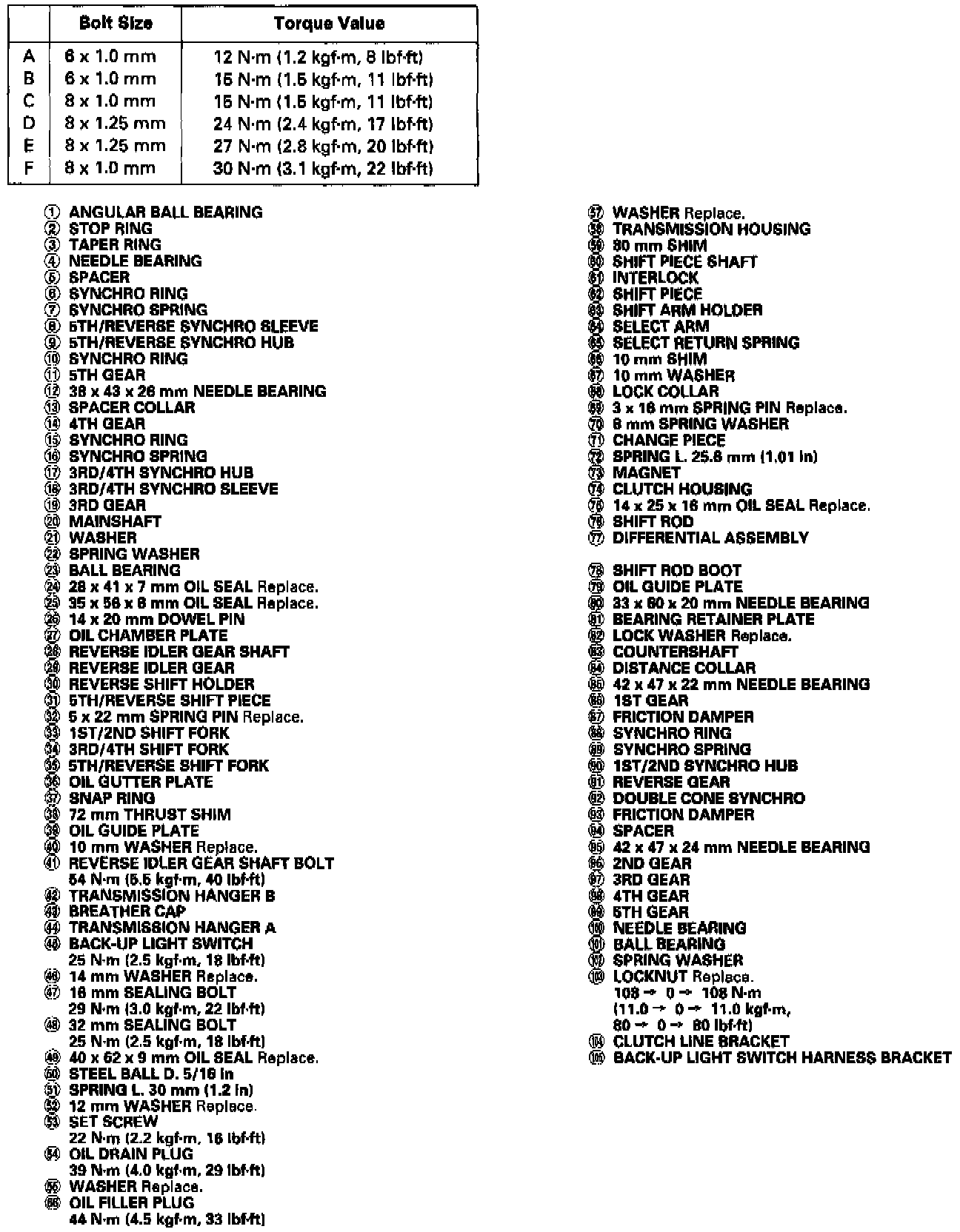 - This transmission uses no gaskets between the major housings; use liquid gasket (P/N 08718-0001 or 08718-0003)