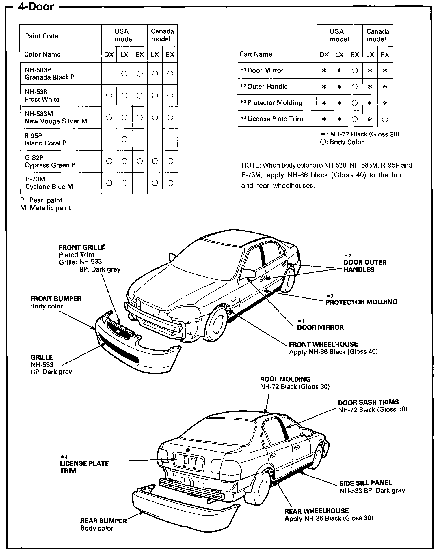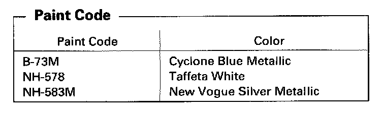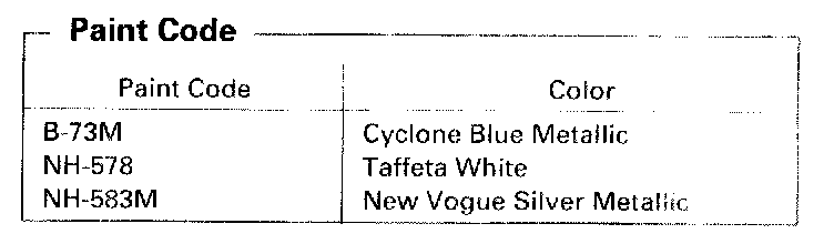 Paint Code - U.S 1998 Model (4-door Sedan):