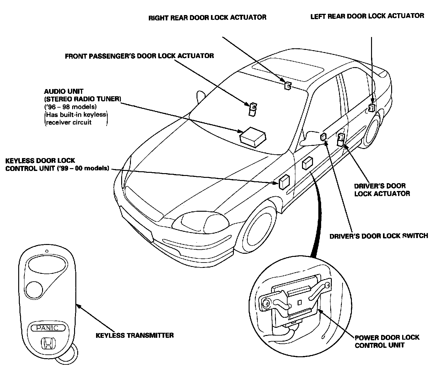 - If the doors unlock or lock with the transmitter, but the LED on the transmitter does not come on, the LED is faulty; replace the transmitter.