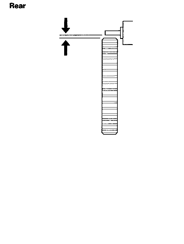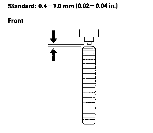 2. Measure the air gap between the wheel sensor and purser all the way around while rotating the purser. Remove the rear brake disc to measure the gap on the rear wheel sensor. If the gap exceeds 1.0 mm (0.04 inch), check for a bent suspension arm.