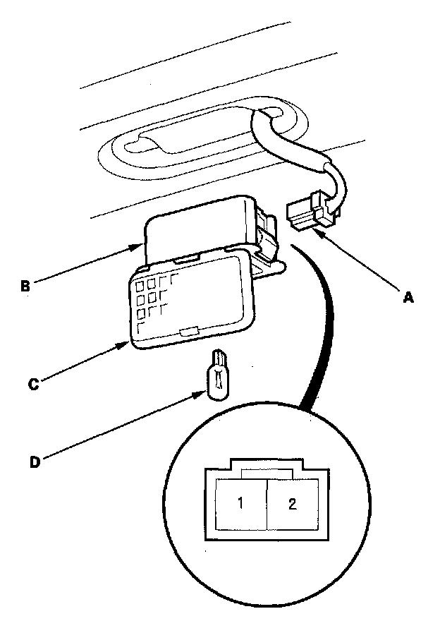 5. Make sure that the bulb (D) is OK. Check for continuity' between the No.1 and No.2 terminals.