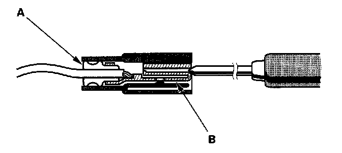 3. If you cannot get to the wire side of the connector or the wire side is sealed (A), disconnect the connector and probe the terminals (B) from the terminal side. Do not force the probe into the connector.