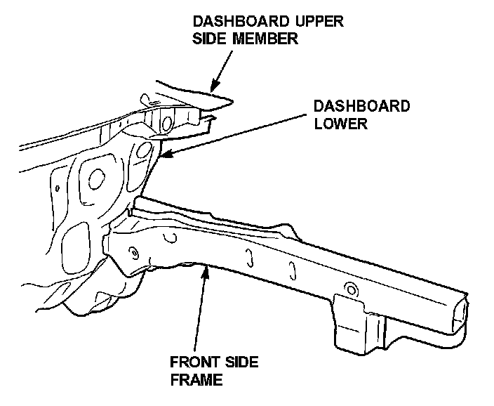 - Center punch around the spot weld imprints on the front side frame, lower dashboard, and dashboard upper side member.