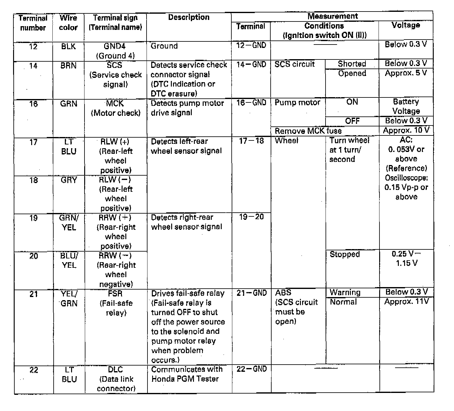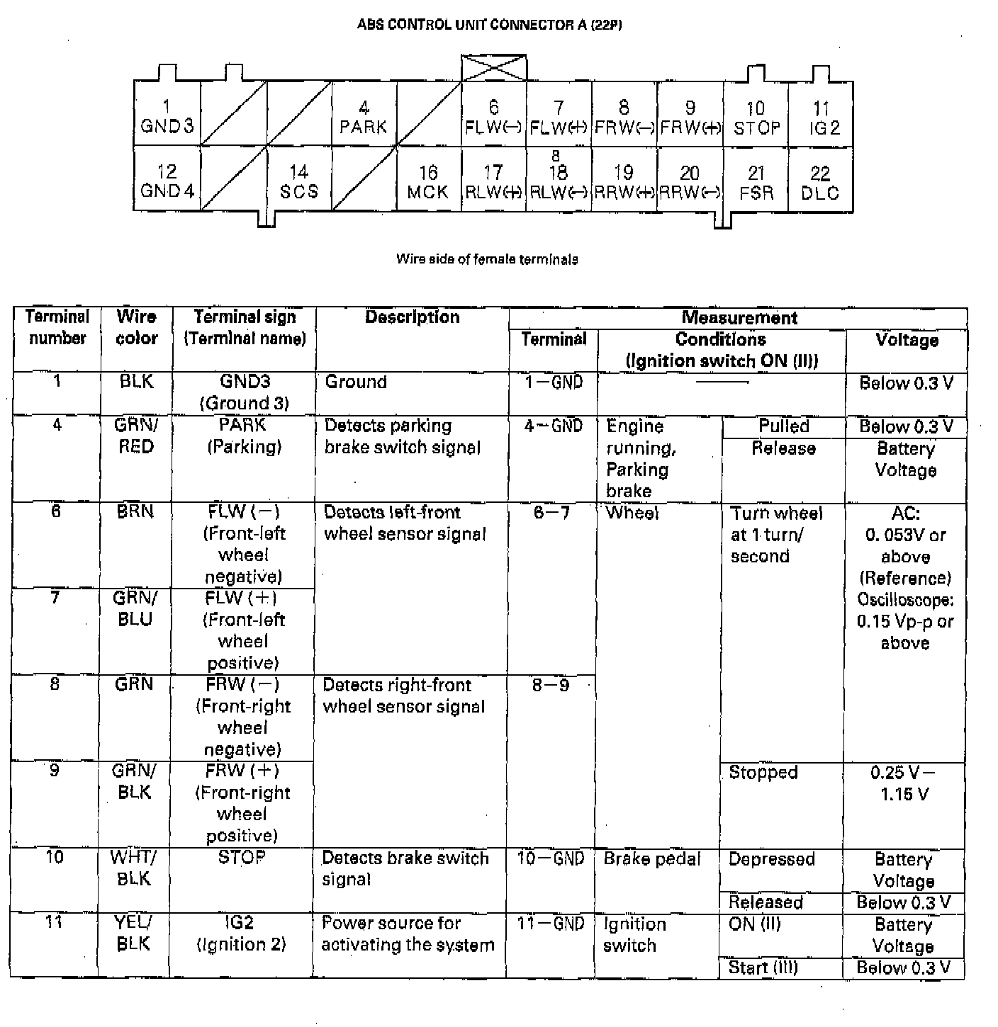 ABS Control Unit 22P Connector