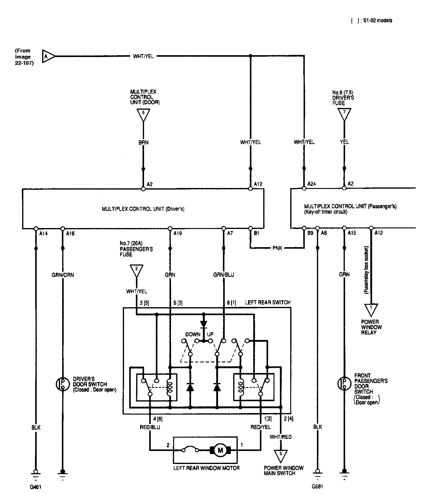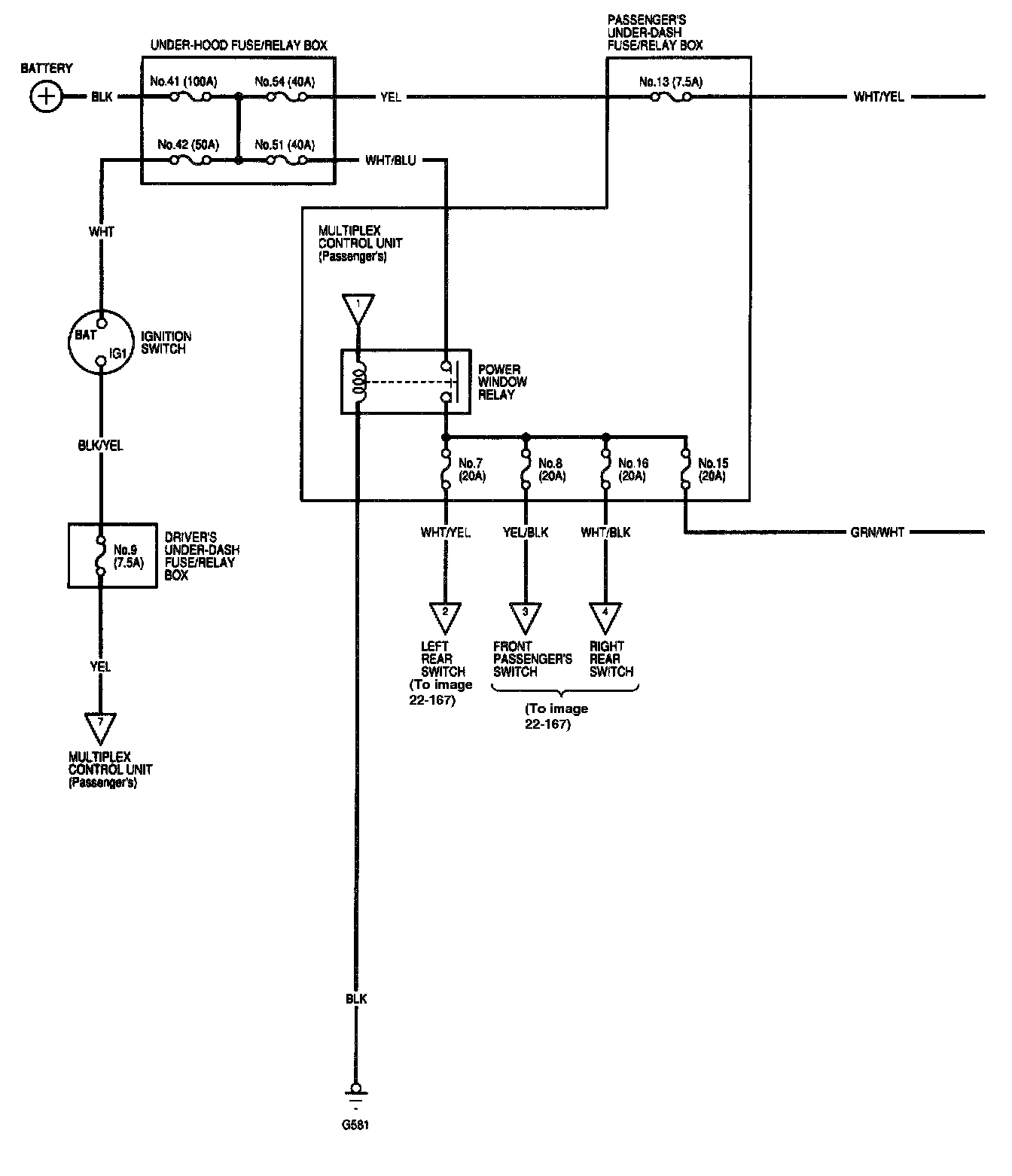 Power Windows - Circuit Diagram - Sedan Image 22-167:
