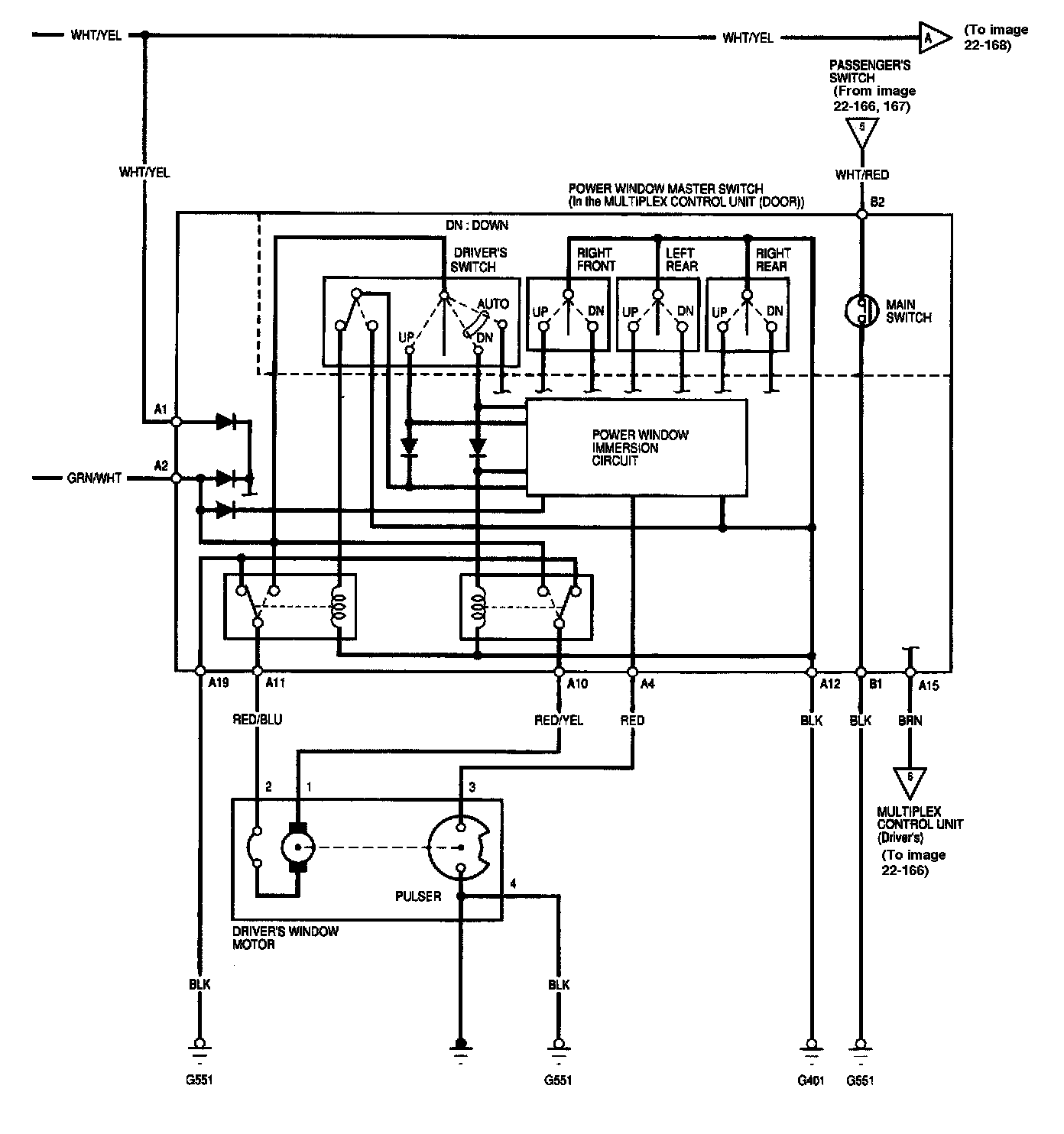 Power Windows - Circuit Diagram - Sedan Image 22-168:
