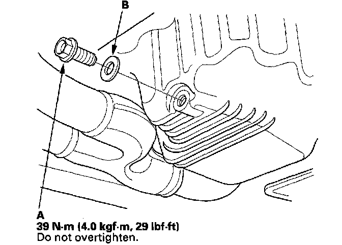 3. Reinstall the drain bolt with a new washer (B).