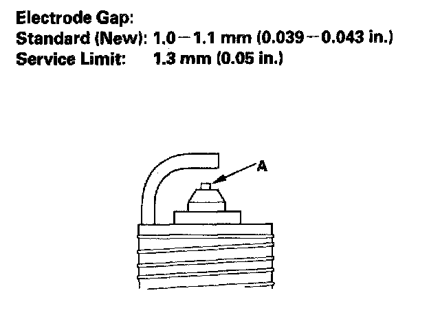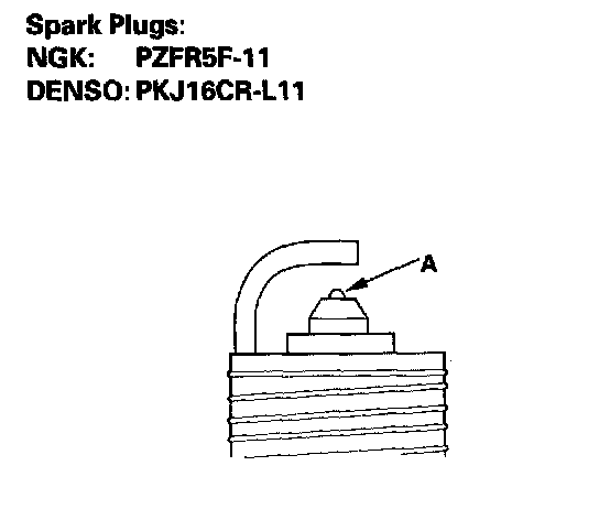 2. Do not adjust the gap of platinum tip plugs (A); replace the spark plug if the gap is out of specification.