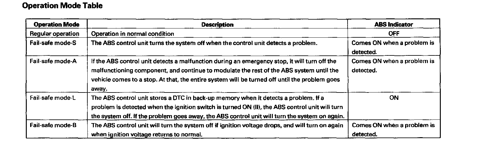 - Turns the ABS indicator ON