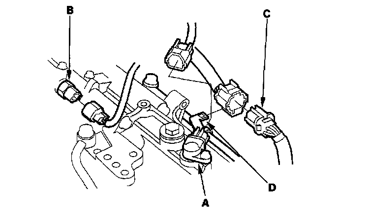18. Remove the transmission range switch connector (C) from the connector bracket (D), then disconnect it.